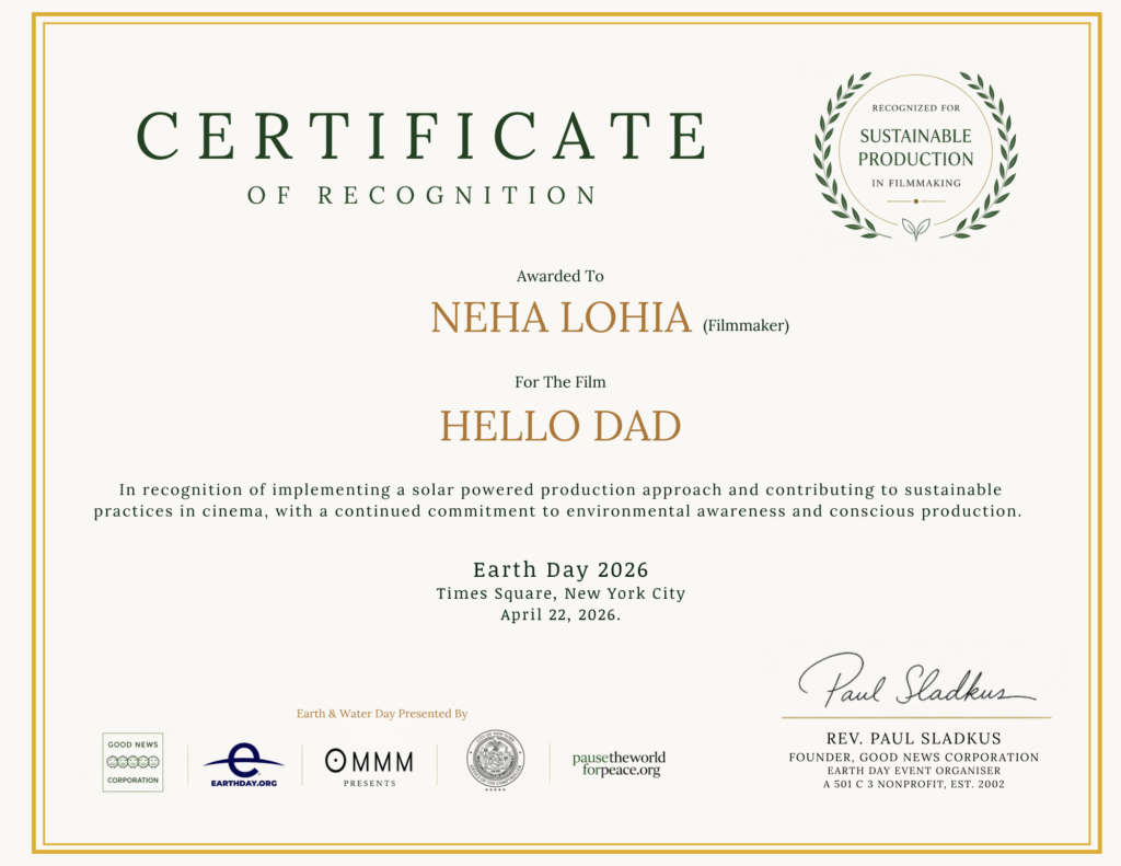 This is a deeply personal film for me. In its truest sense, “Hello Dad” is a reflection of my own grief and yearning for my father. It is a recognition that no matter how many years pass when grief and memories come up, they hit exactly the same and over a period of time you slowly get more accustomed to live with them but doesn’t mean they dont hurt. The film explores the raw and unspoken bond between a father and daughter, one that transcends the physical world. It’s a story of releasing, healing, and the quiet moments of reconnection that we experience in our hearts, even when the ones we love are no longer with us. The film is a tribute to my own father, his presence, his love, and the strength he continually gives me, even in his absence. – neha lohia